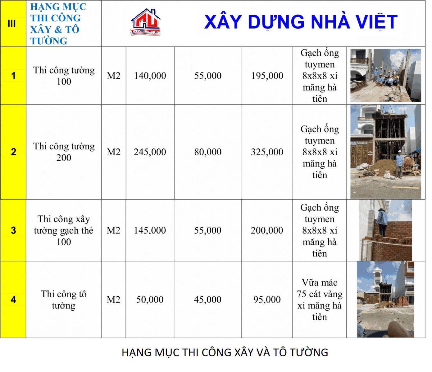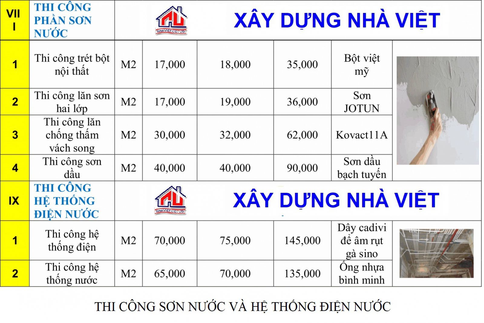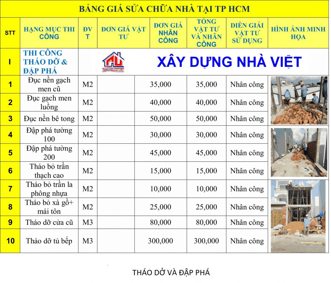 BẢNG BÁO GIÁ SỬA CHỮA NHÀ XÂY DỰNG NHÀ VIỆT 2021