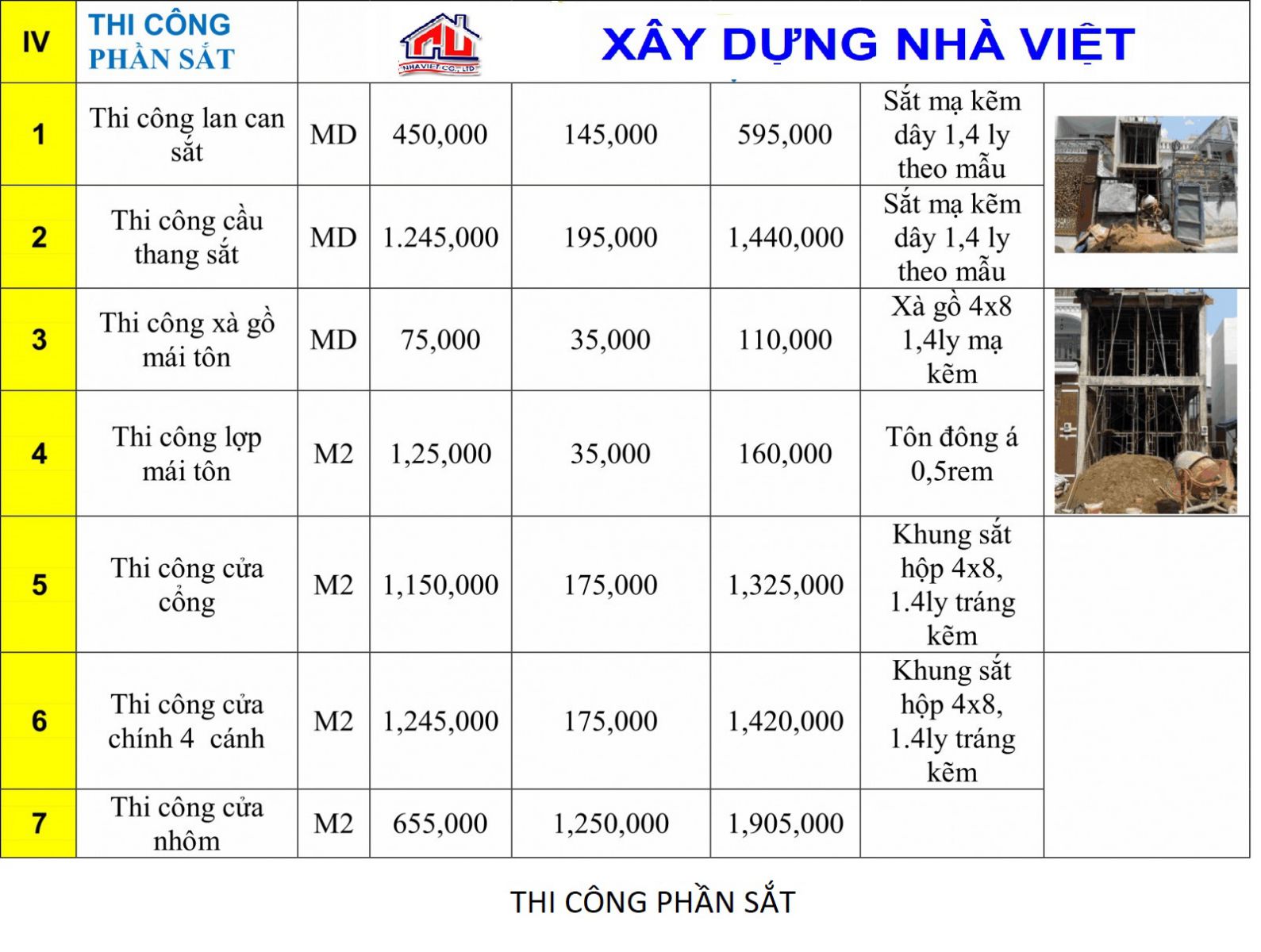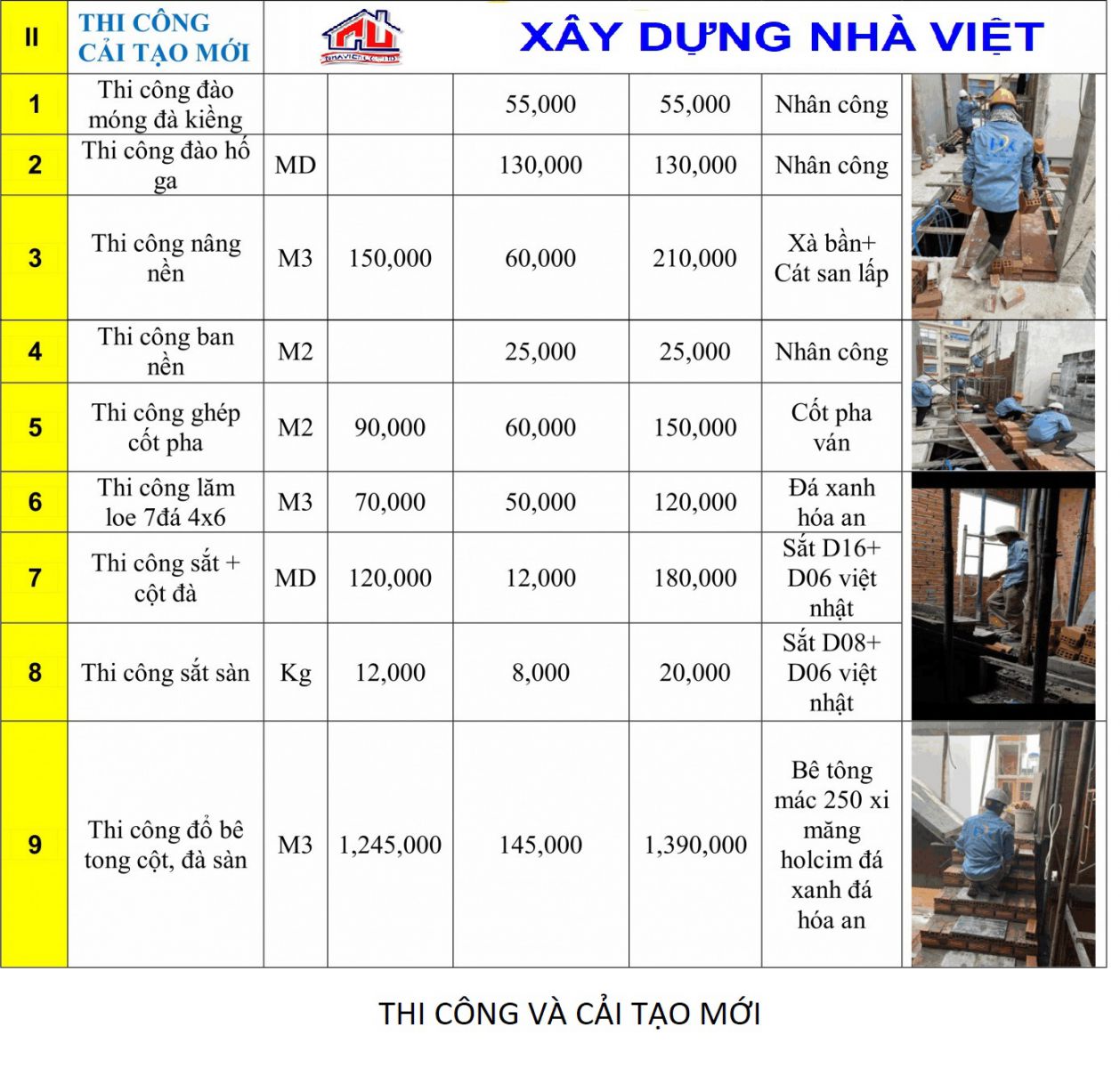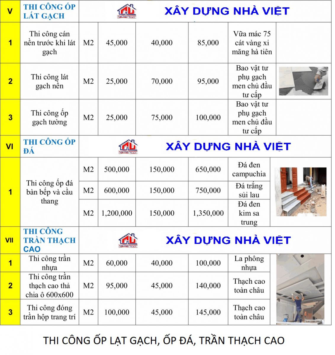 BẢNG BÁO GIÁ SỬA CHỮA NHÀ XÂY DỰNG NHÀ VIỆT 2021