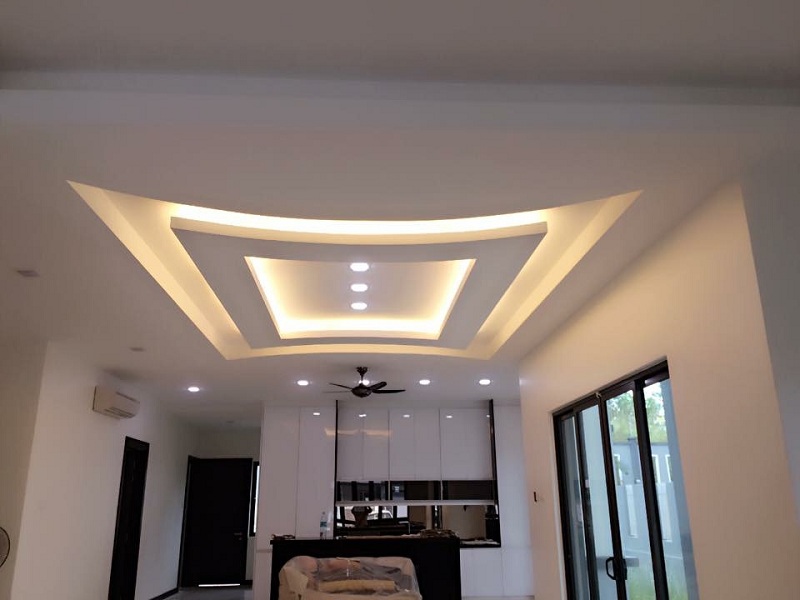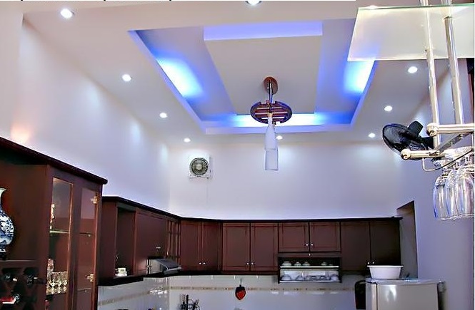 Hình dáng giật cấp của mẫu trần thạch cao này có phần khá cầu kỳ. Từ những tạo hình tròn và hình chữ thập đẳng cấp, cho đến những viền vàng thực sự sang trọng và hiện đại. Đây là thiết kế mẫu trần thạch cao hợp cho những ai muốn cải thiện phòng bếp của mình sao cho hoàn mỹ và hiện đại hơn.