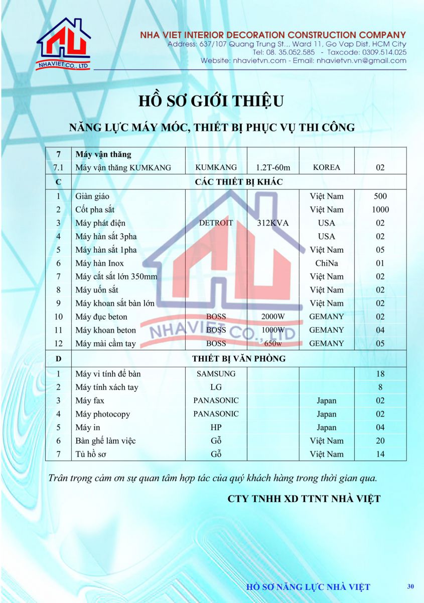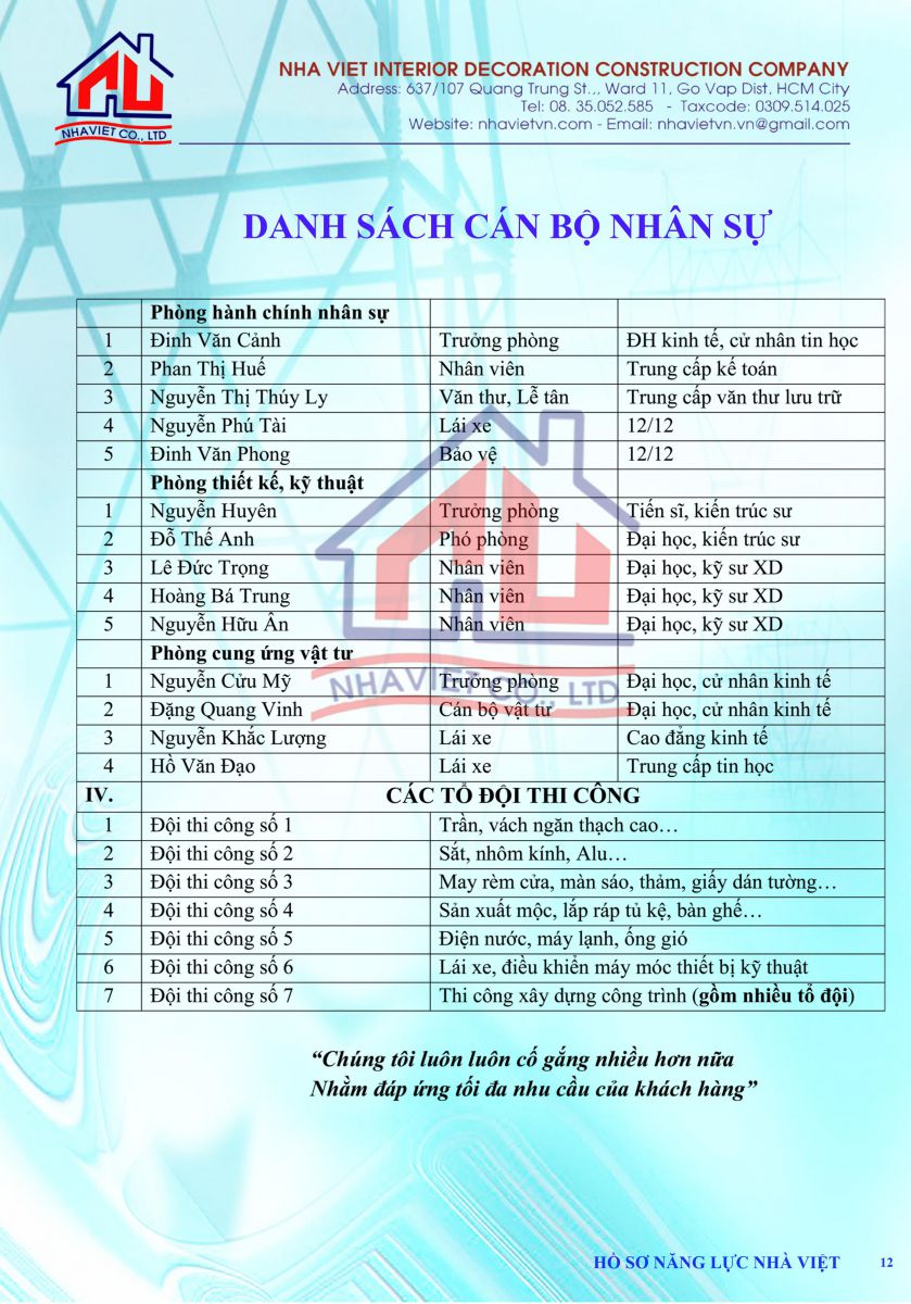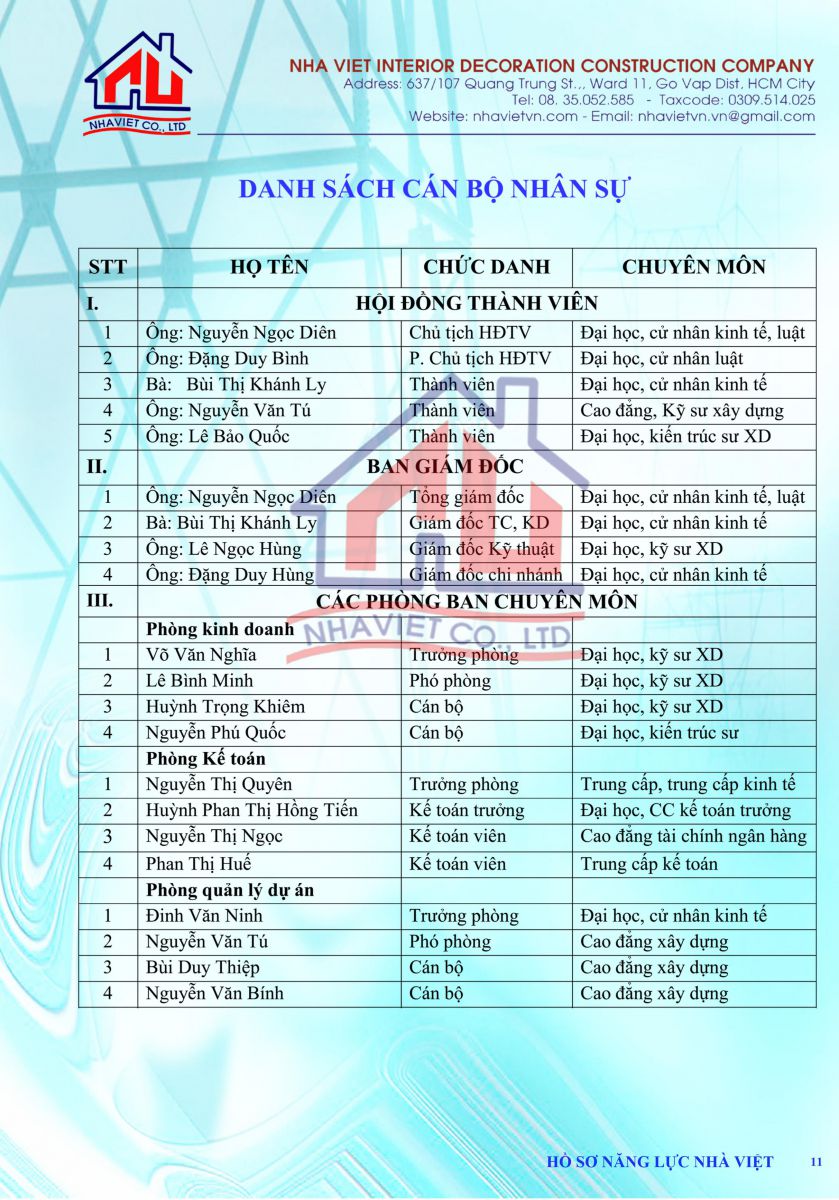 CÔNG TY TNHH XÂY DỰNG TRANG TRÍ NỘI THẤT NHÀ VIỆT được thành lập trên nền tảng kỹ thuật cao. với đội ngũ cán bộ, kỹ sư, kiến trúc sư, công nhân viên lành nghề.